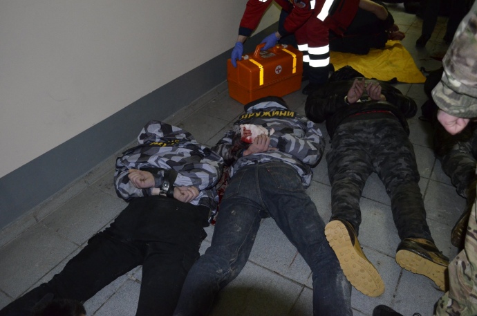 За попередньою інформацією, під час інциденту постраждало вісім поліцейських та четверо осіб, які вчиняли правопорушення. Їм надається медична допомога.