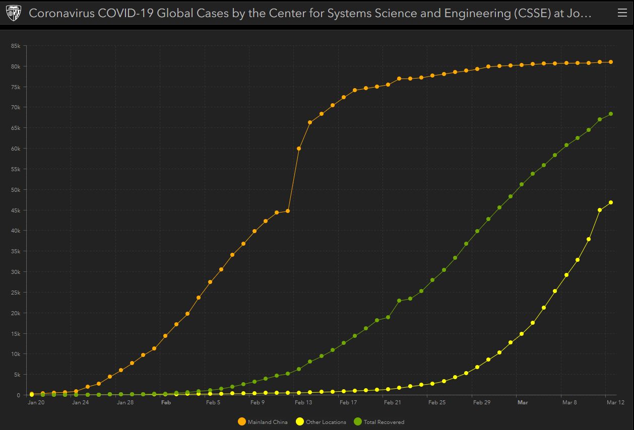 - За зиму 2019-2020 рр новий коронавірус поширився у Китаї, а потім розійшовся по всьому світу – його зафіксовано вже у 116 країнах чи територіях, загалом 127 750 людей заразилися (дві третини, 80,9 тисяч, – у Китаї), 4 717 осіб померли, 68 307 – одужали.