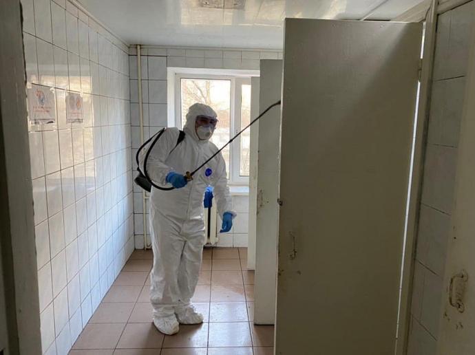 Заходи проводились у зв'язку з проживанням у даному гуртожитку чоловіка 2001 року народження, який в період з 05 по 10 березня контактував з родичами померлої від коронавірусу громадянки в м. Радомишль".