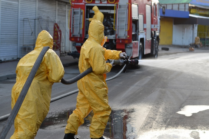 Дослівно: "Дезінфекційні заходи проводились з метою профілактики інфекційних захворювань. Для виконання завдань рятувальники перебували у засобах індивідуального захисту".