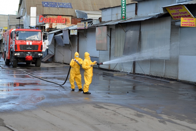 У Хмельницькому рятувальники провели дезинфекцію на території місцевого речового ринку.