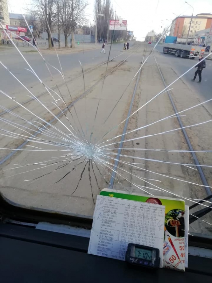 Одному трамваю розлючені пасажири розбили лобове скло.