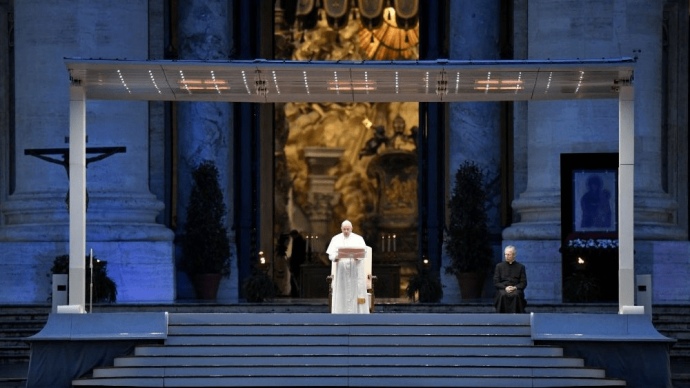 Папа Римський помолився на порожній площі святого Петра у Ватикані про припинення пандемії COVID-19