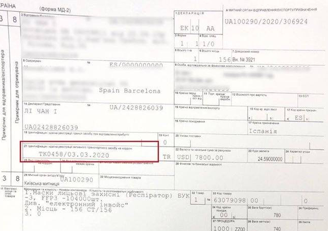 - За його словами, експорт цих масок відбувся ще 2-го та 6-го березня і є легальним постачанням товару. Респіратори перетнули український кордон 3-го та 7-го березня відповідно, вилетівши рейсами на Стамбул.