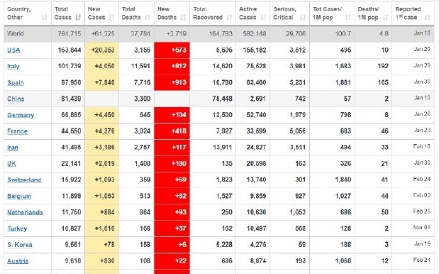 Джерело: дані сайту worldometers, дані центру Джона Гопкінса, який регулярно оновлює статистику зареєстрованих випадків по країнах і світу