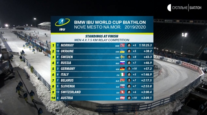 Дмитро Підручний, який завершував естафету, попри один промах, зумів вийти зі стрільби другим, і зберіг позицію збірної до фінішу.