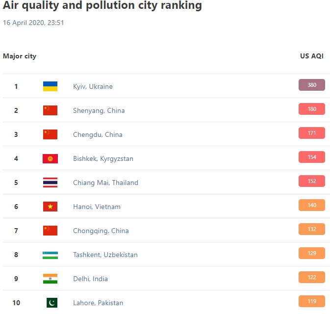 Джерело: Світовий рейтинг за індексом якості повітря QIAir