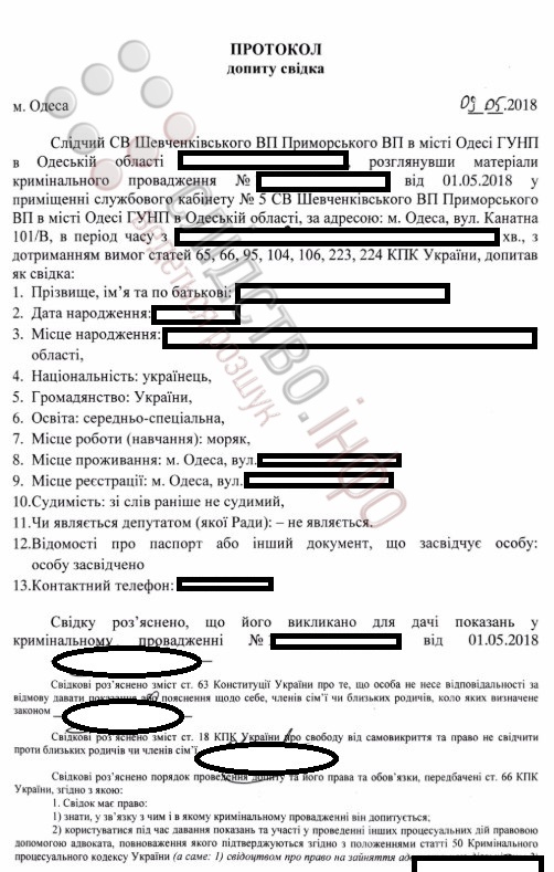 "Слідство.Інфо" отримало протокол допиту свідка від власних джерел.