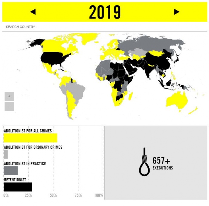 У 2019 році у світі стратили щонайменше 657 людей, це були смертні кари у 20 країнах.