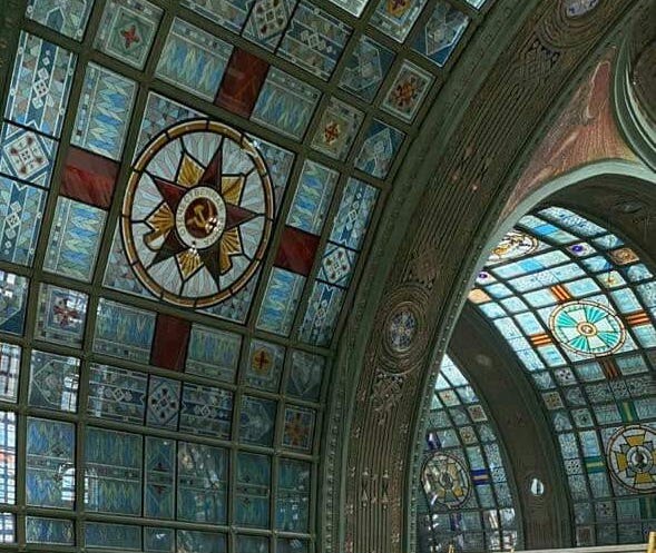 У головному храмі Збройних сил Росії з'явилися зображення серпа і молота на вітражах.