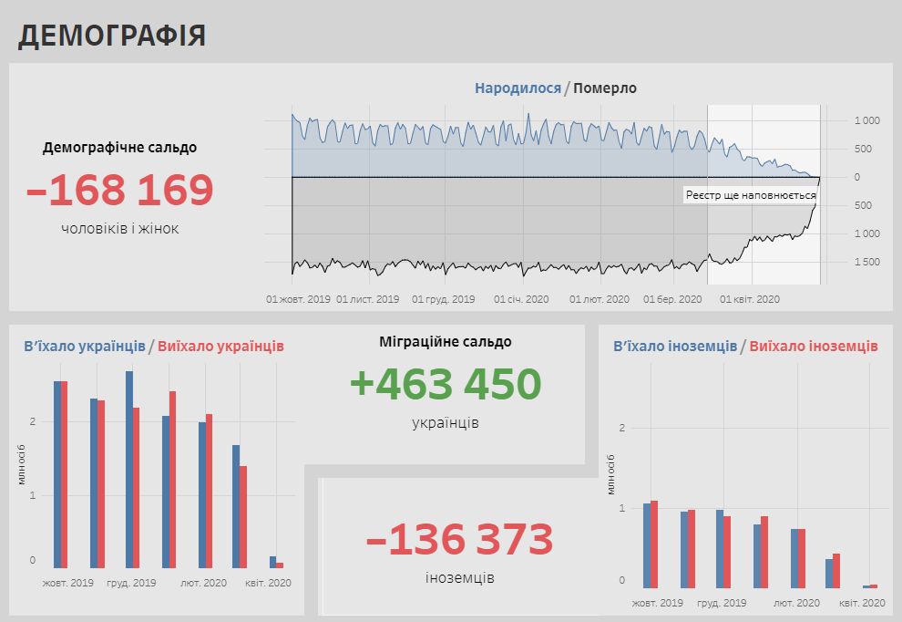 Ми використовували показники, за якими можна оцінювати зміни стану захворюваності, міграційних і демографічних процесів, зайнятості, фінансах і торгівлі, а також бюджеті та податках. Ми отримали офіційні дані з 1 жовтня 2019 року, додали до них зрозумілі візуалізації та об’єднали на одній сторінці.