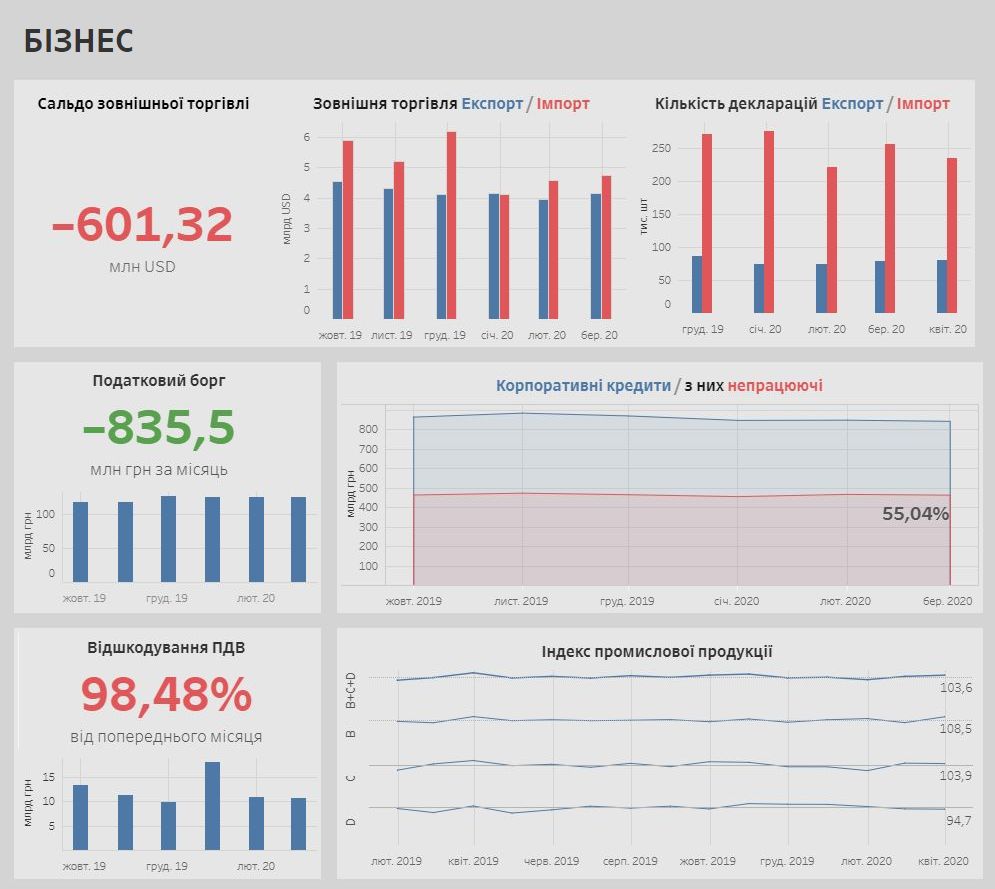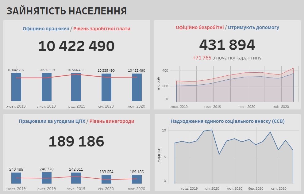 Тепер можна не гадати, а точно визначити, скільки українців повернулось до країни (463 тис. людей), наскільки впав обсяг продажів взуття та одягу в магазинах (-98,6%), як змінюється кількість безробітних (431 тис. людей) та яка з областей найменше втратила доходів до місцевого бюджету".