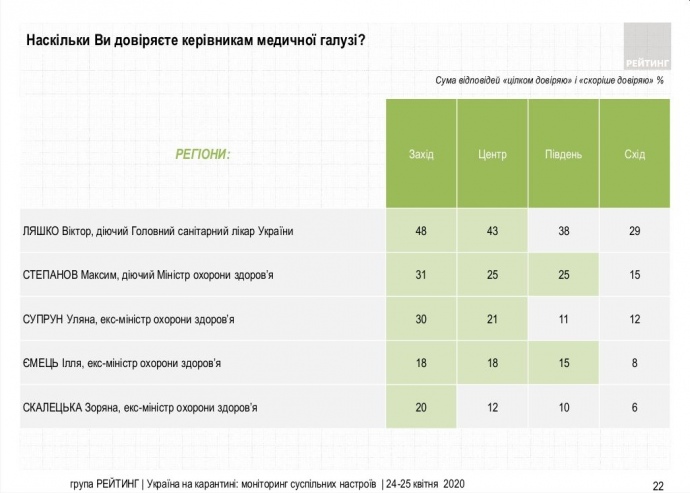 Джерело: опитування Соціологічної групи "Рейтинг", проведене 24-24 квітня 2020 року