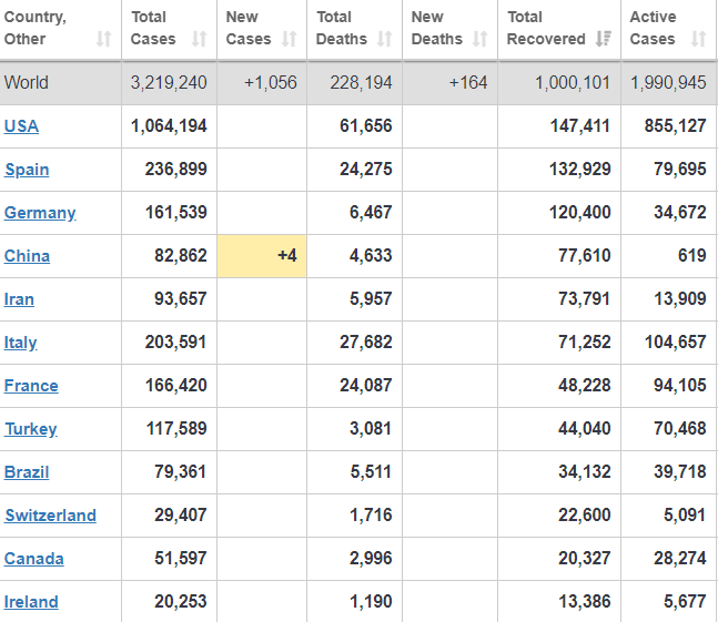 Перший мільйон людей вилікувався від коронавірусної хвороби. Активними залишаються 1 мільйон 990 тисяч випадків захворювання.