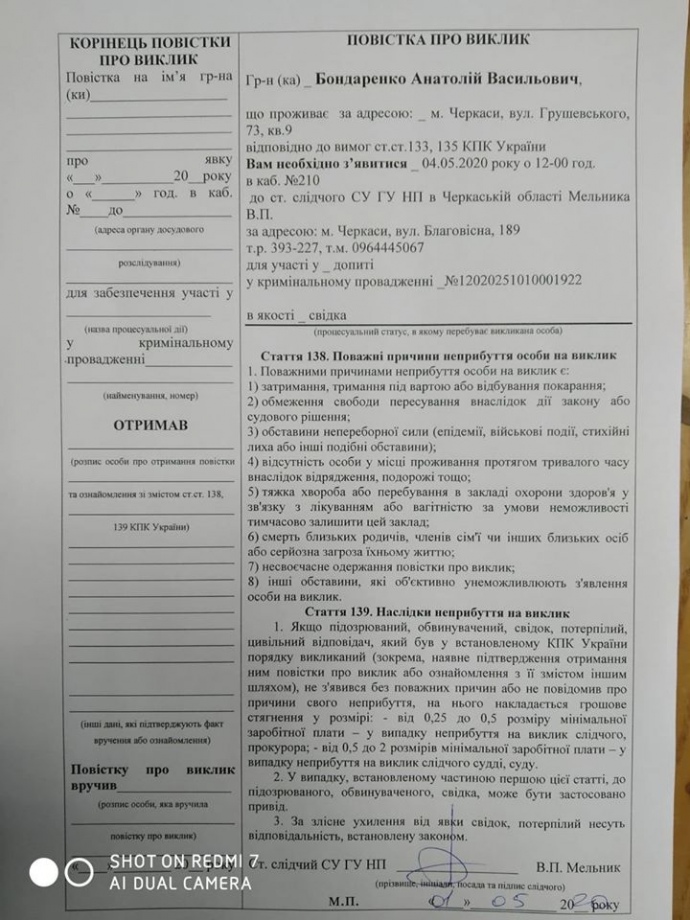 Деталі: Мер опублікував фото повістки, в якій зазначається, що він має прибути до слідчого 4 травня о 12 годині на допит в якості свідка.