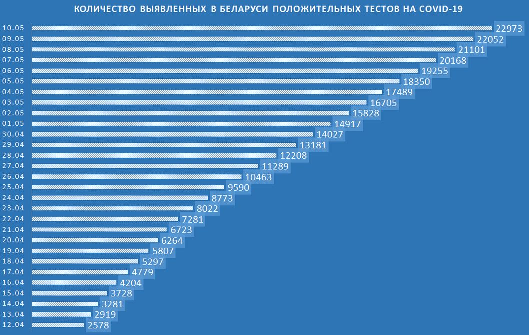 - Станом на 9 травня був виявлений 951 новий випадок коронавірусу в Білорусі.
