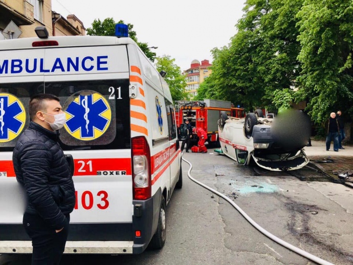 Легковик зіткнувся зі "швидкою" у Франківську: та перевернулася, 3 людини у лікарні