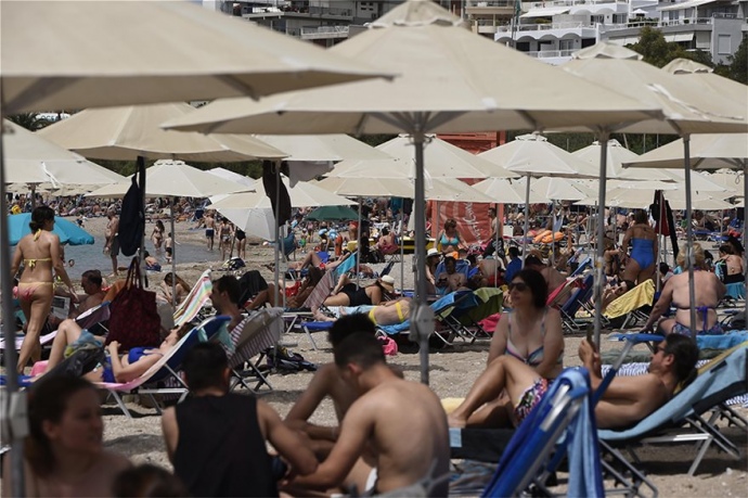 На популярному пляжі Алімос, що знаходиться на південь від Афін, люди стояли в черзі з раннього ранку, щоб зайняти місце під сонцем.