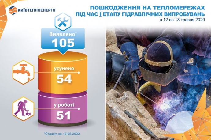 Комунальники звітують, що станом на 18 травня виявили 105 пошкоджень, з них на 54-х ділянках вже завершені ремонтні роботи.