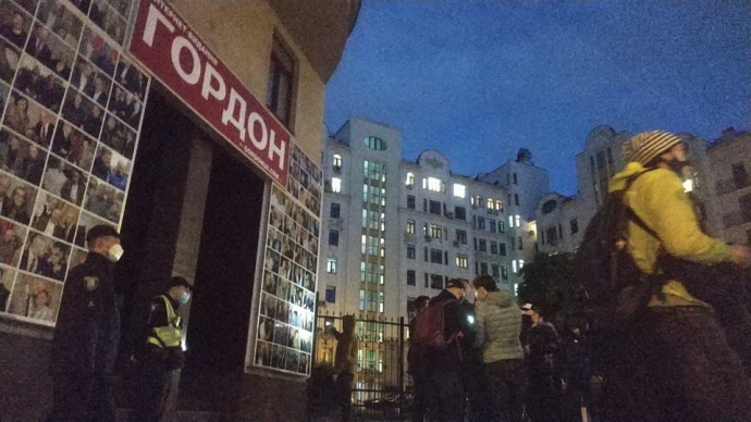Під офісом журналіста Дмитра Гордона влаштували протест через інтерв'ю з колишнім ватажком бойовиків, росіянином Ігорем Стрєлковим (Гіркіним).