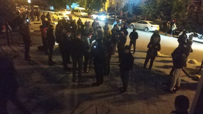 Деталі: На акцію прийшли кілька десятків людей. Серед учасників протесту, зокрема, присутній націоналіст Євген Карась. Також присутні журналісти.