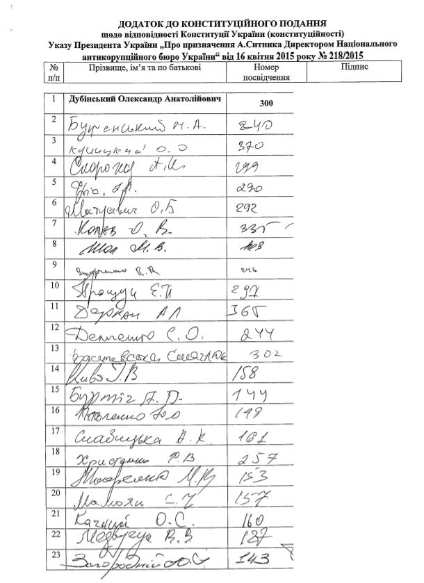 Представляти інтереси нардепів у конституційному поданні вибрали Дубінського. Нардепи просять визнати подання невідкладним.