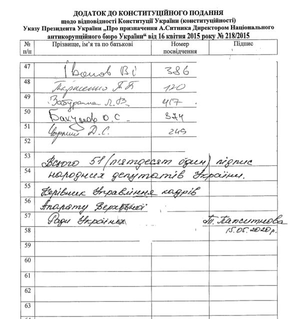 Також автори подання нагадують, що КСУ 16 грудня 2019 року не схвалив зміни до Конституції, які мали закріпити право президента призначати і звільняти директорів НАБУ і ДБР.