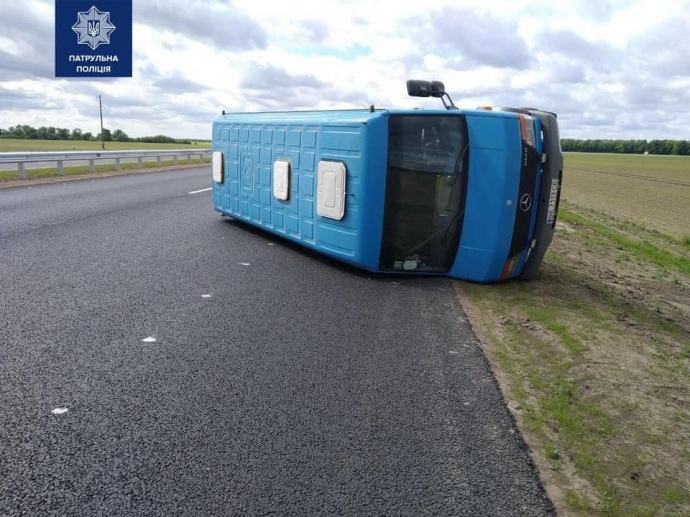 Також у ДТП потрапив вантажний мікроавтобус Mercedes-Benz. Щоб уникнути зіткнення з Toyota, він здійснив різкий маневр і перевернувся.