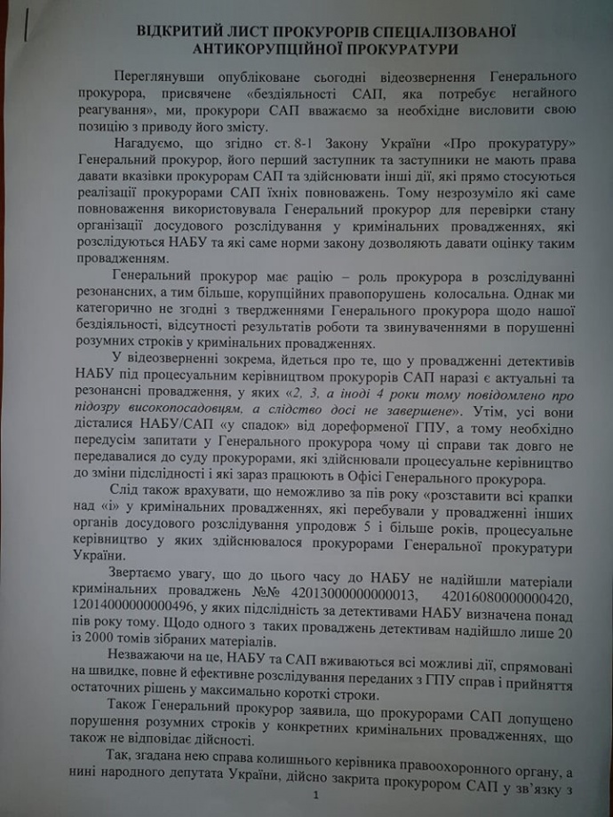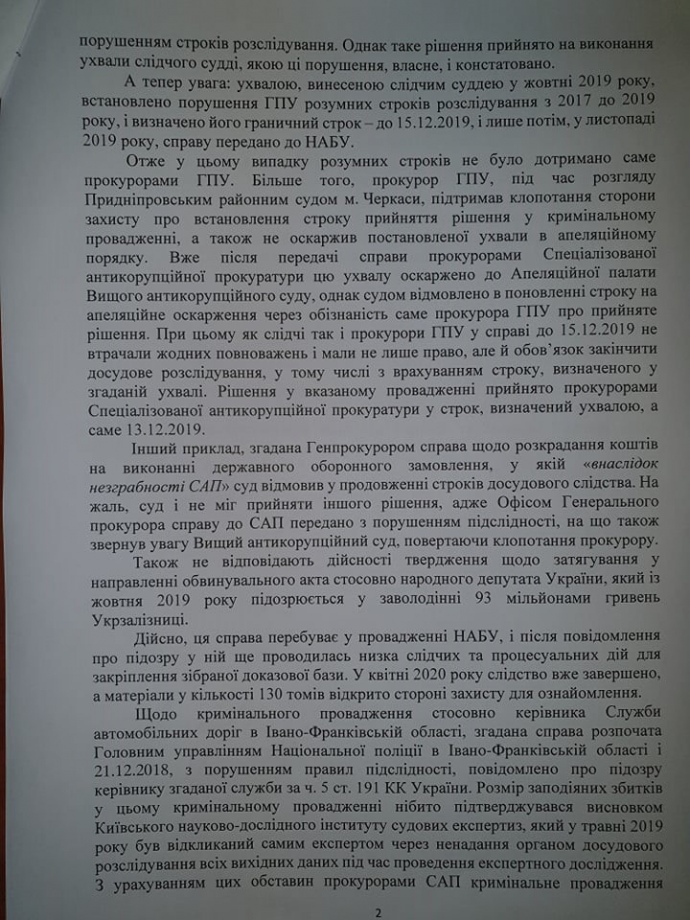 Дослівно: "Ми категорично не згідні з твердженням генпрокурора щодо нашої бездіяльності, відсутності результатів роботи та звинуваченнями у порушенні розумних строків в кримінальних провадженнях".