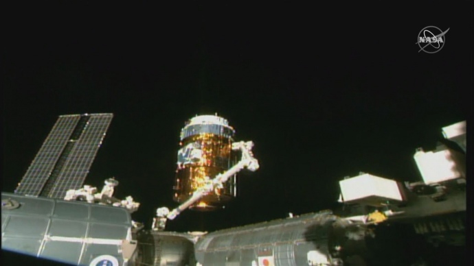 Деталі: 12-тонний HTV-9 був захоплений роботизованою рукою МКС о 21:13 JST 25 травня. Після закінчення робіт з швартовки космічного корабля, о 4:24 JST 26 травня екіпаж МКС відкрив люк HTV-9 і увійшов до відсіку з вантажем.