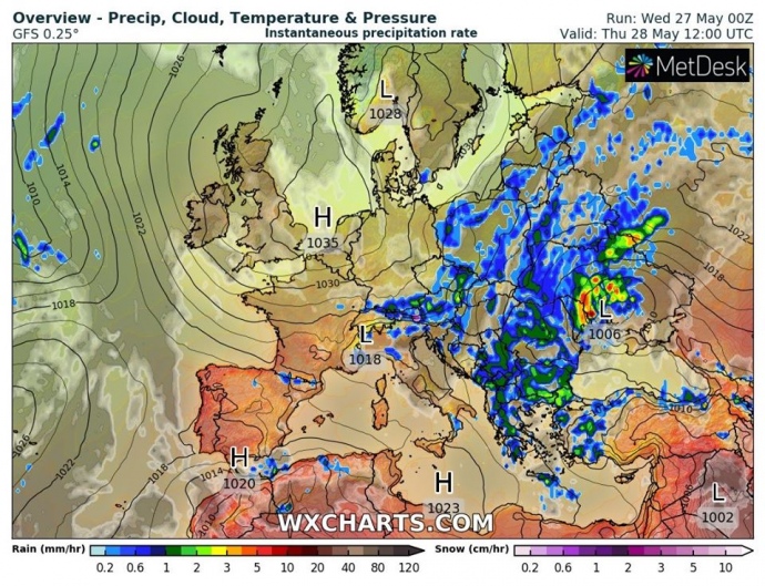 Пряма мова: "28-го травня, з півдня, з Туреччини, з Чорного моря, в Україну переміститься циклон, який зумовить значні дощі.