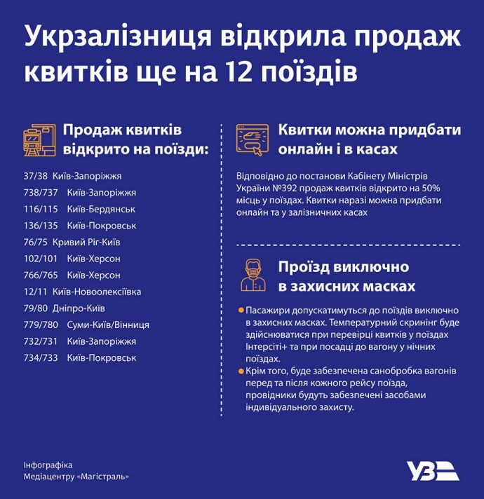 Укрзалізниця вже двічі заявляла про відкриття онлайн продажу квитків на поїзди після карантину. Спочатку йшлося про 5 рейсів, а потім про 9.