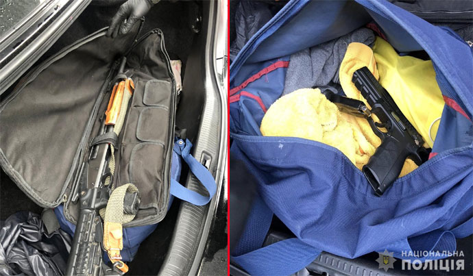 Затриманих доправили до Броварського відділу поліції. Ними виявились люди, які прибули з інших регіонів України. Зброю вилучили.