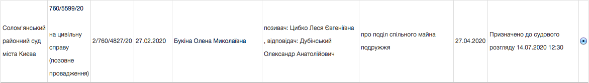 Водночас, інформація на сайті "Судова влада" свідчить, що дружина (можливо, колишня) депутата Леся Цибко подала до суду позов про поділ спільного майна подружжя.