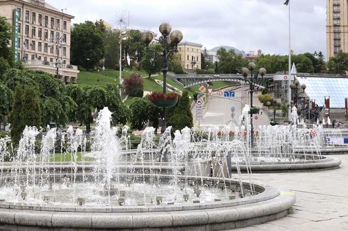 У День Києва, який відзначається в останні вихідні травня, розпочали свою роботу центральні київські фонтани, а також комплекс із дванадцяти гейзерних фонтанів в акваторії Русанівського каналу.