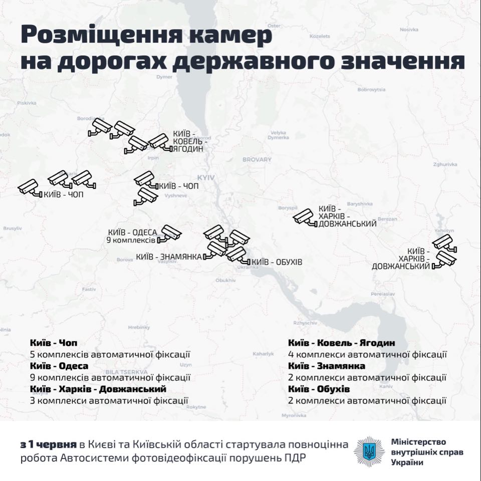У Києві камери за 8 хв зафіксували 262 випадки перевищення швидкості. Адреси камер