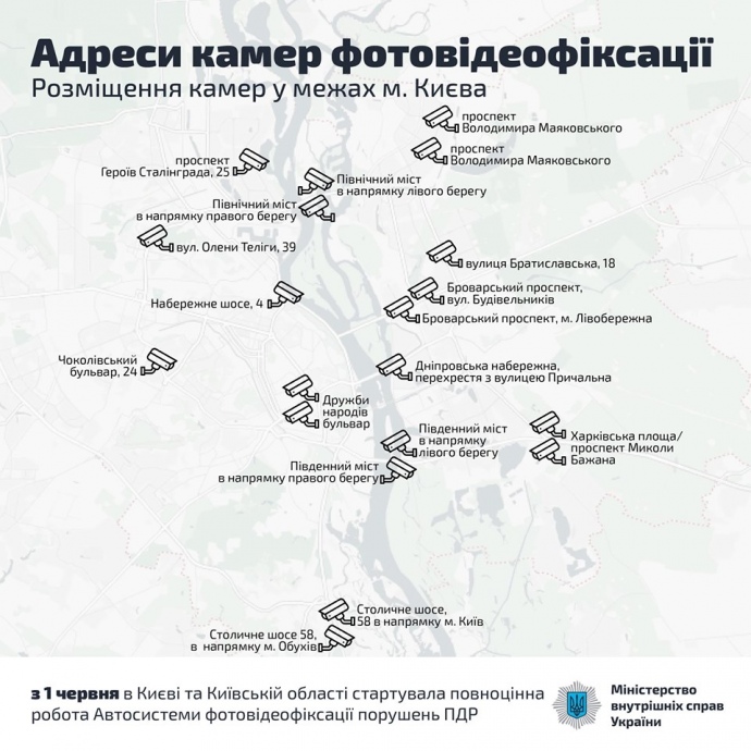 У Києві камери автоматичної фіксації правопорушень за перші 8 хвилин роботи 1 червня зафіксували 262 випадки перевищення швидкості.