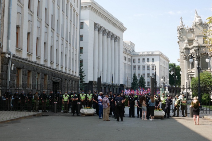 Деталі: Під стінами ОП зібралися приблизно 500 людей, які скандують: "Вова виходи" і "Не мой президент". Прихильники Шарія зібралися через свавілля правоохоронців і нападів на активістів та журналістів та кричать: "Полиция - работать".