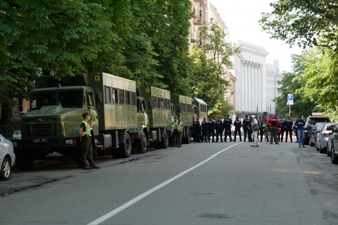 Дослівно поліція: "Аби не допустити порушень громадського порядку та забезпечити мирне проведення запланованих акцій у середмісті столиці, поліцейські спільно з військовослужбовцями Національної гвардії України заступили на посилене чергування".