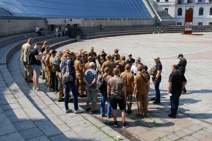 Водночас, на Майдані Незалежності також зібралися 2 сотні активістів: половина із них у формі муніципальної варти та "Правого сектору".