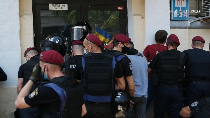 Пресслужба "Нацкорпусу" повідомила, що біля офісу президента затримали 12 осіб. Там закликали "збиратися під Печерським райвідділком поліції", щоб "визволити своїх".