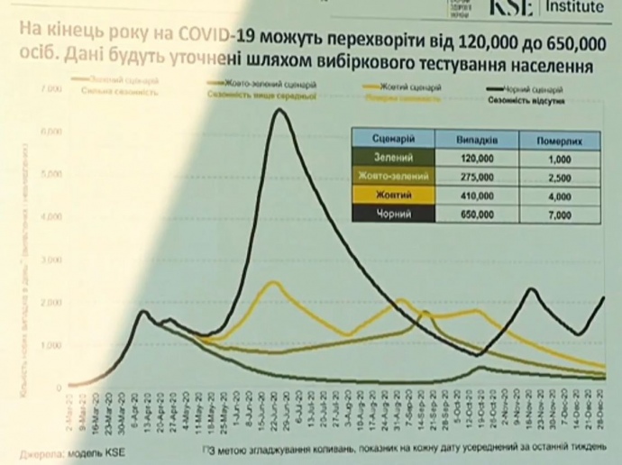 Експерти прорахували 81 сценарій розвитку епідемії в Україні, зараз ретроспективно вибрали три "найбільш оптимістичні", які враховують сезонність у літній час. Це "чорний", "жовтий" і "зелений" сценарії.