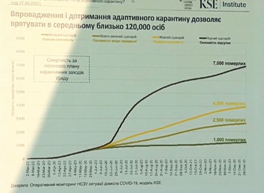 Пряма мова Ляшка: "Цей графік показує, коли і як на території нашої країни буде впроваджуватися адаптивний карантин… Цей графік показує, що якщо ми рухаємося без сезонності, у деяких областях нашої країни жорсткий карантин уже може бути введений з 22 червня. Динаміка зростання може показати ці цифри.