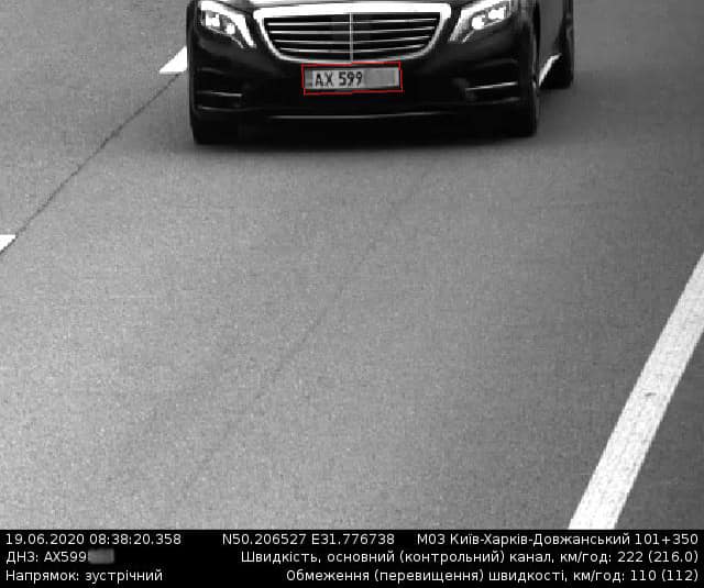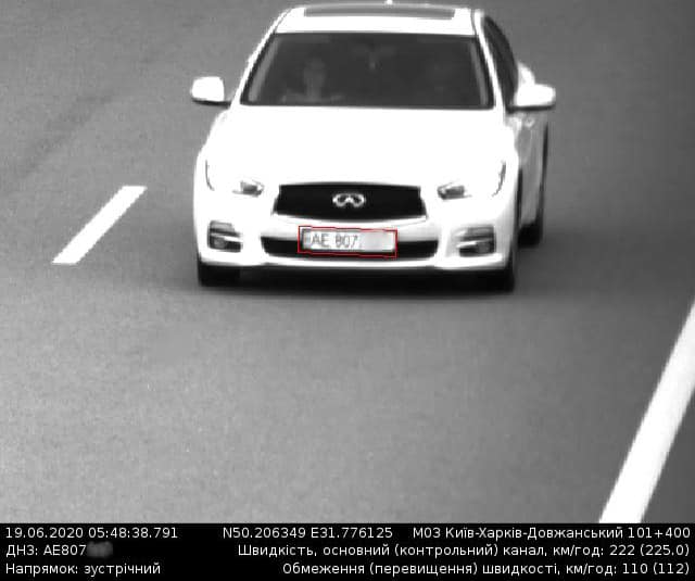 Дослівно: 19 червня "найбільшою швидкість була в автомобіля Іnfiniti Q50, ДНЗ AЕ807*** та автомобіля Mercedes-Benz S500L з ДНЗ АX599***. Вони рухалися зі швидкістю 222 км/год. на трасі М03 Київ — Харків — Довжанський, де дозволена швидкість на вказаній ділянці — 110 км/год".