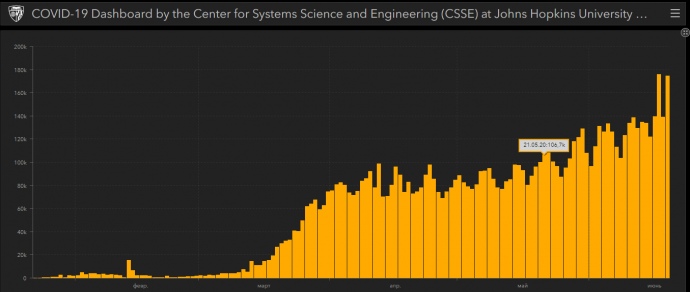 Наразі США на першому місці у світі за кількість діагностованих випадків коронавірусу, в країні 2 350 421 пацієнтів з COVID-19. На другому Бразилія, там 1 084 883 хворих, на третьому Росія, де 584 680 пацієнтів з коронавірусом.