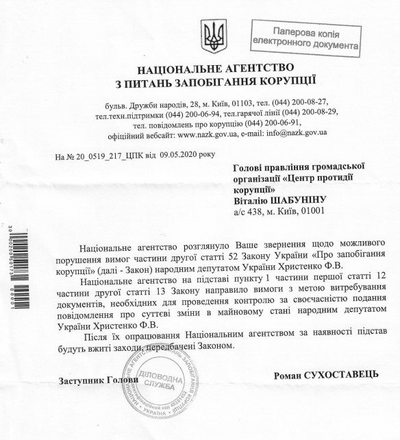 ЦПК написав відповідну заву до НАЗК. І відомство підтвердило, що проведе перевірку.