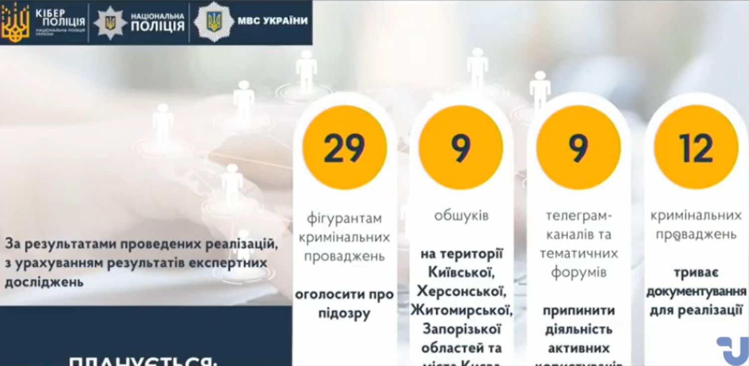 Представник Кіберполіції Кропива додав, що обшуки проходили у 10 регіонах України. За 10 днів було проведено 36 обшуків.