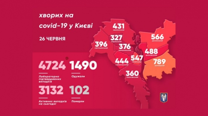 На сьогодні в столиці вже 4724 підтверджених випадків захворювання на COVID-19. Усього від коронавірусу померли 102 мешканці Києва, подолали коронавірус 1490 киян.