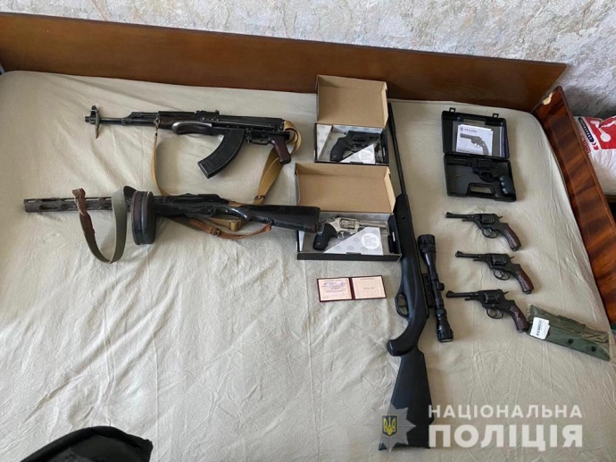 У помешканні хулігана поліцейські виявили та вилучили колекцію різноманітної зброї. Також вилучено пристрій для відстрілу гумовими кулями, з якого ймовірно він стріляв у перехожого. Уся зброя направлена на проведення відповідних експертиз.