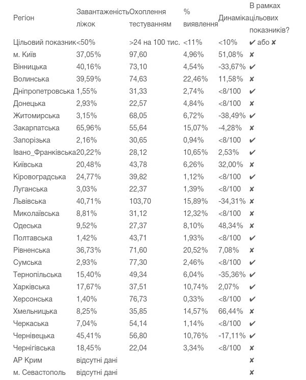 Загалом 12 регіонів України, включаючи столицю, не готові до послаблення карантинних обмежень.